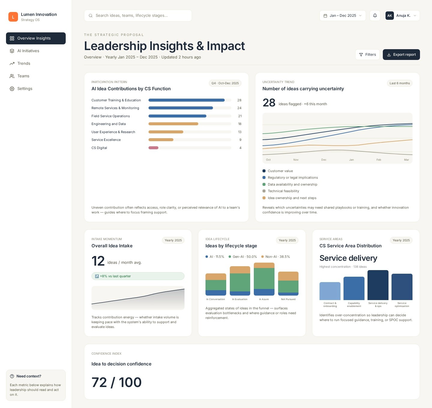 Investments were being made before the right questions had been asked. Customer value wasn't being realised, and leadership had no real visibility into the innovation pulse of the team. As a result, initiatives were duplicated, with no institutional learning.