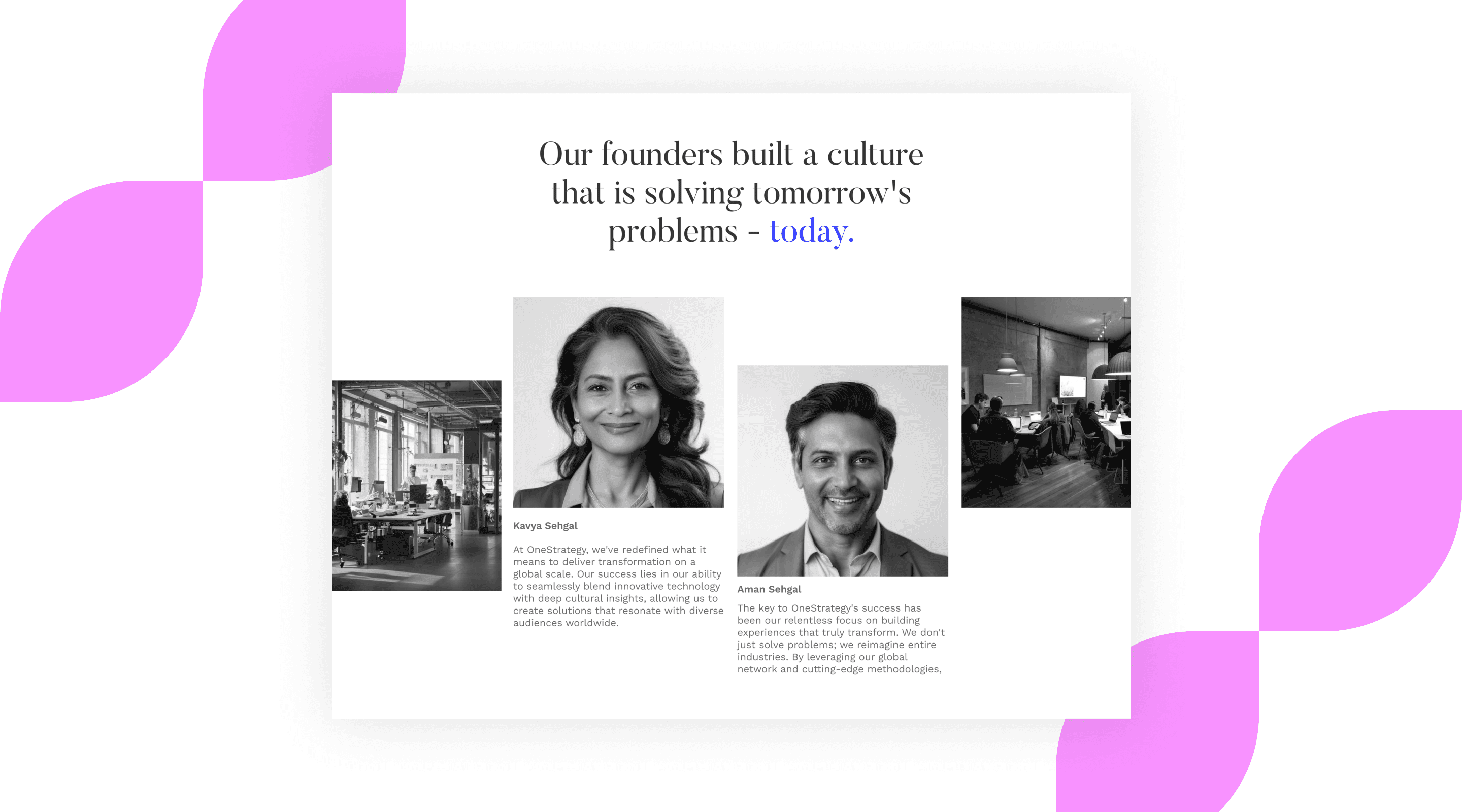 Through in-depth discussions with OneStrategy's founders, we uncovered key business goals that would drive the agency's future success. These objectives included attracting more global clients, significantly increasing website traffic, and expanding the leadership team. These goals emerged from our collaborative research process, providing a clear direction for our redesign efforts.